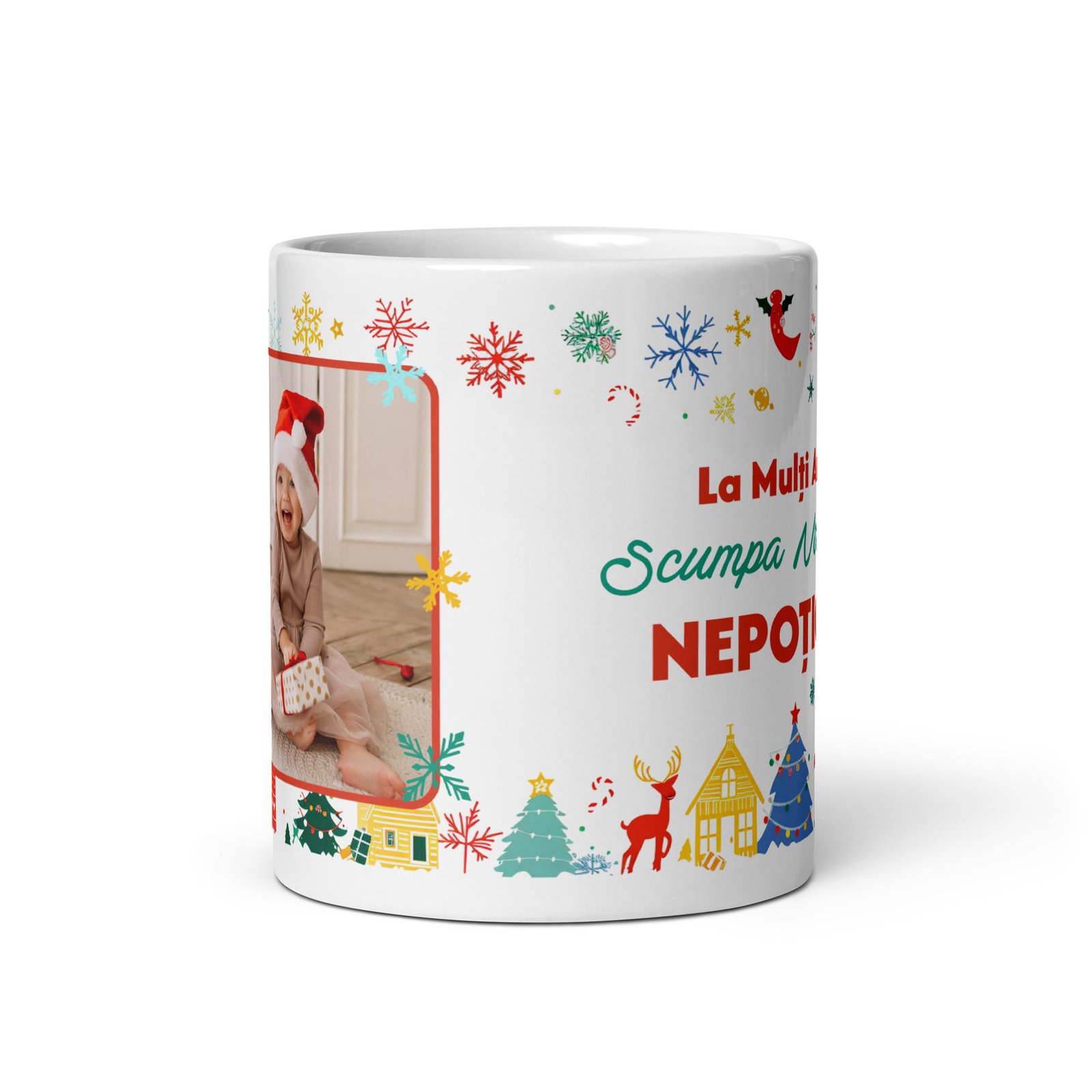 Cană De Crăciun Personalizată Cu Text Și Poză – Scumpă Nepoțică