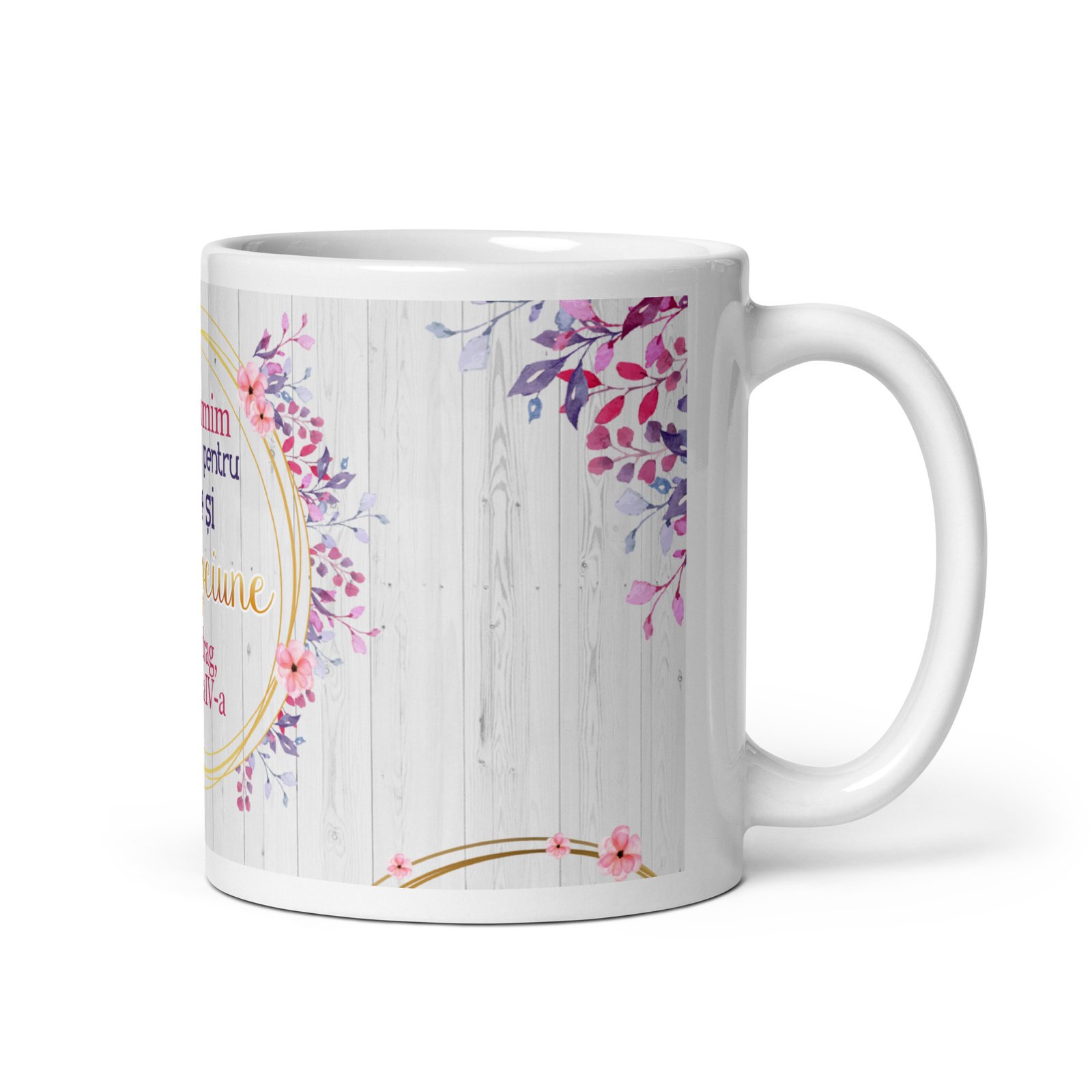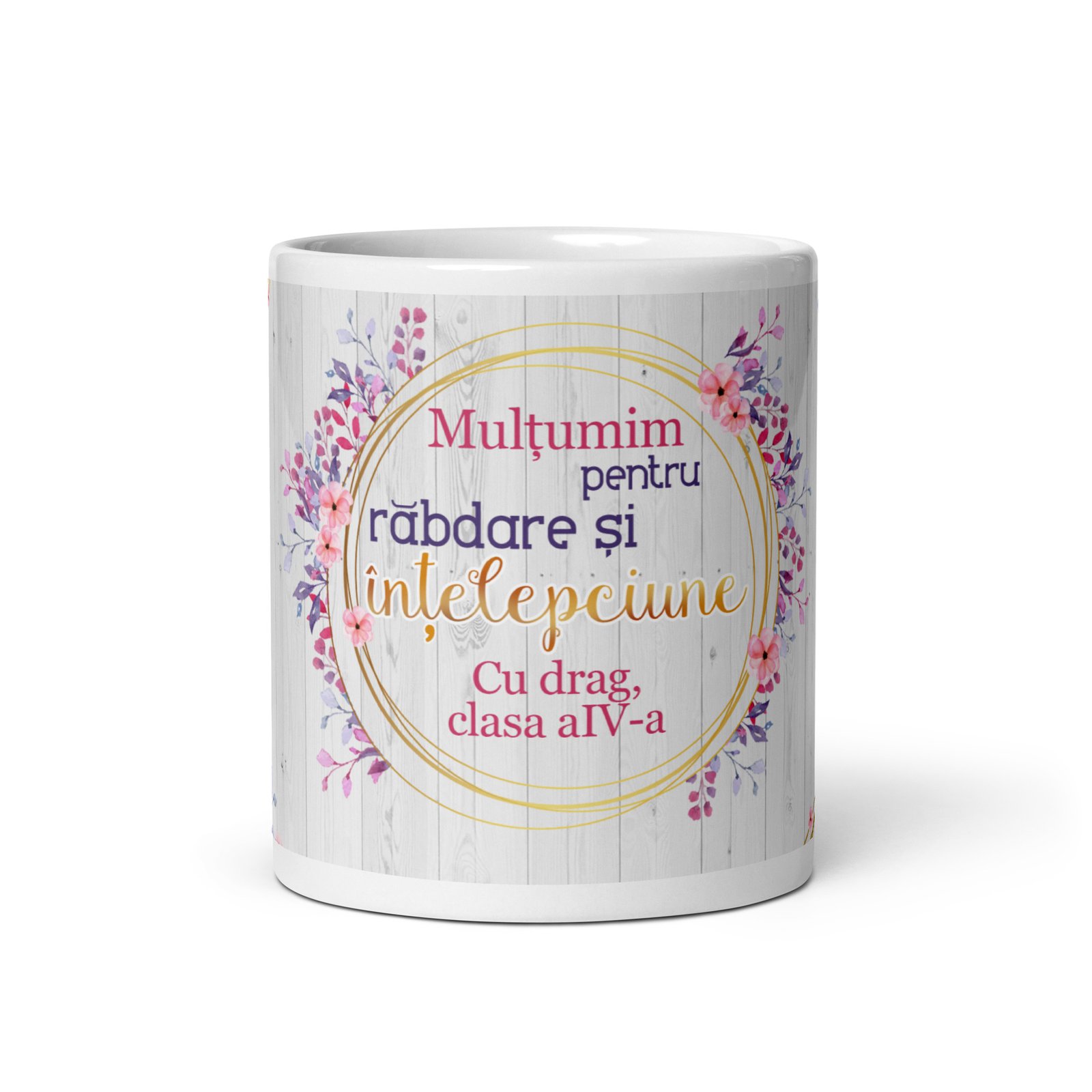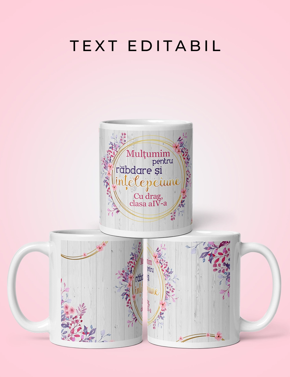 Cană Personalizată Cu Text Pentru Profesoară – Mulțumim Pentru Răbdare
