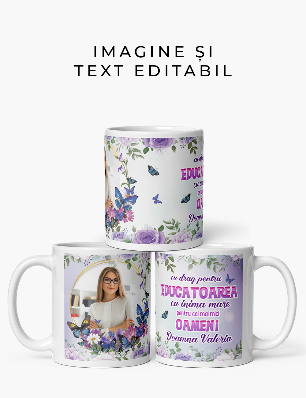 Cană Personalizată cu Text și Poză – Cadou Ideal pentru Educatoare