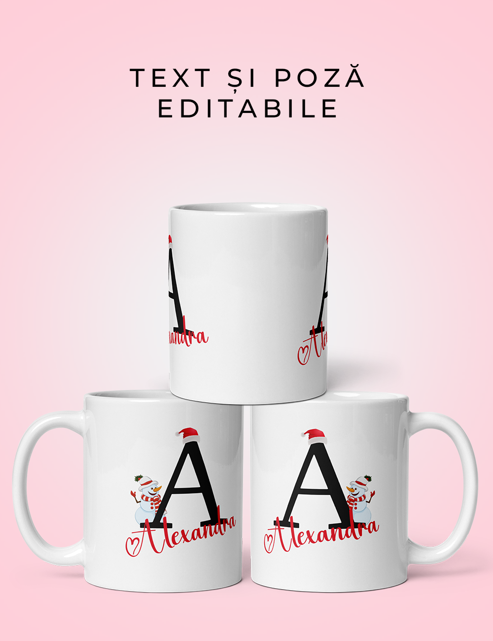 Transformă sărbătorile într-o experiență magică cu această Cană Personalizată de Crăciun! Ideală pentru a-ți exprima dragostea față de familie, prieteni sau chiar animalele de companie, această cană permite adăugarea unui text festiv (cum ar fi un mesaj de Crăciun personalizat) și a unei poze dragi (ex. o imagine retro cu familia ta). Fie că alegi un design clasic cu fulgi de zăpadă, un brăduț vesel sau o poză personală, această cană va aduce bucurie în fiecare dimineață de iarnă. Perfectă ca și cadou unicat în gama de Căni Personalizate de Crăciun!