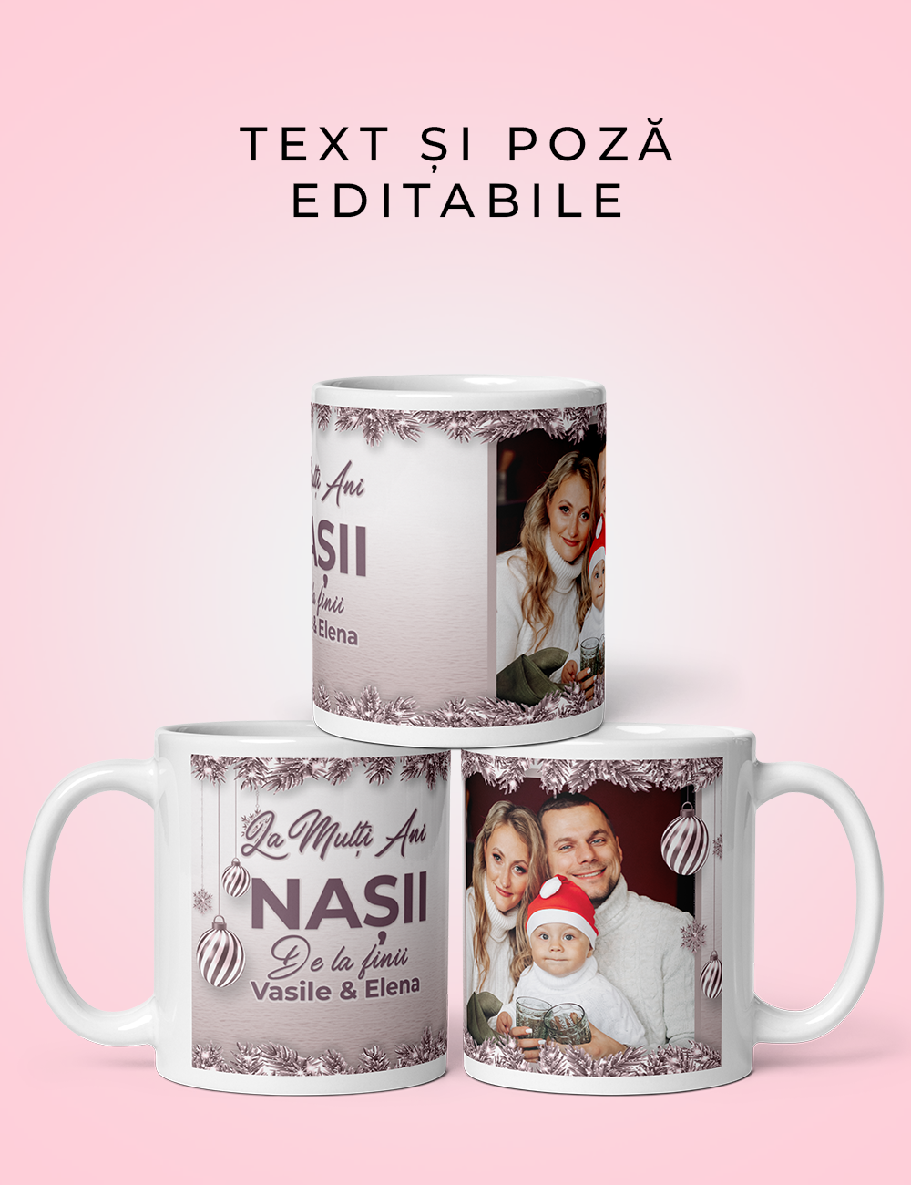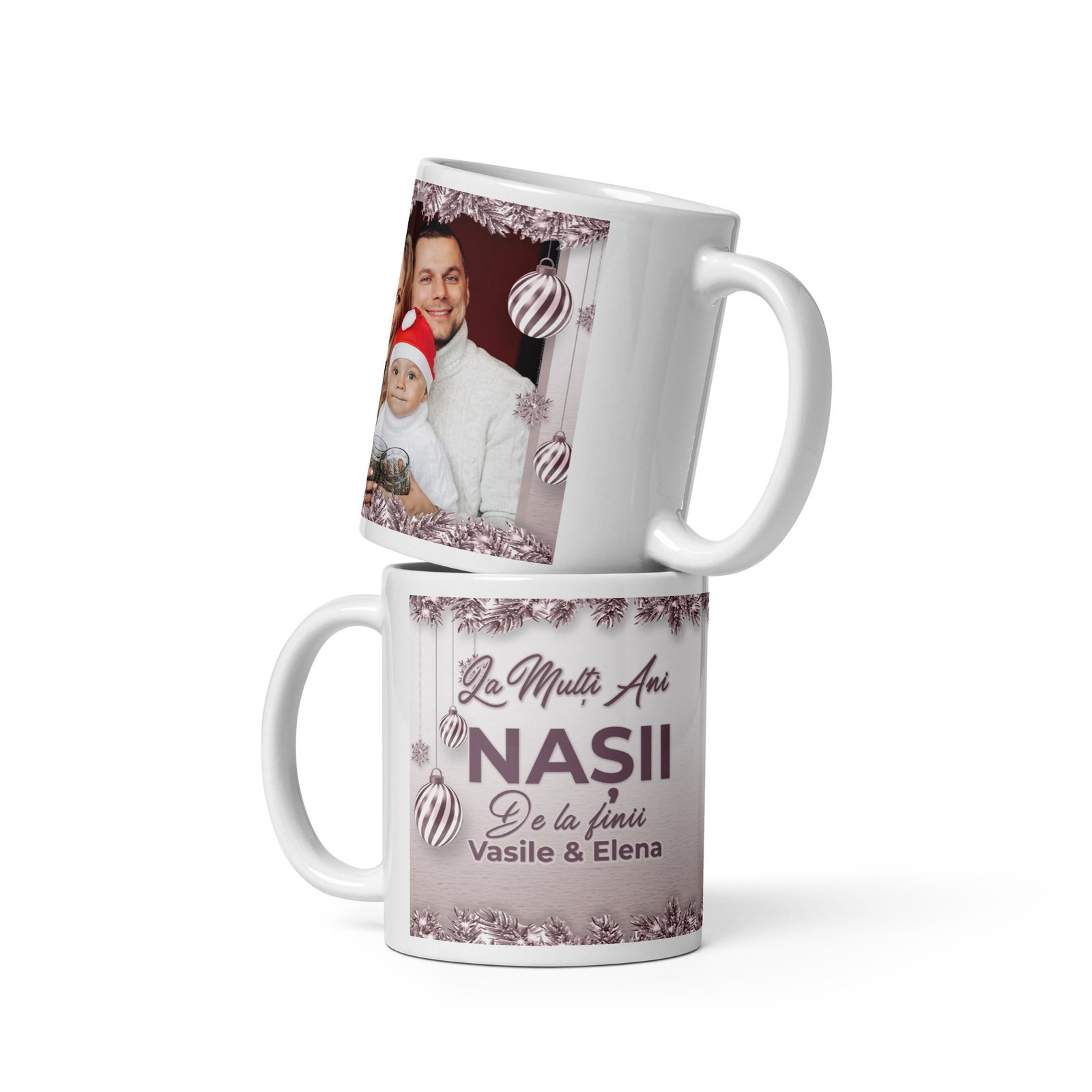 Cană Personalizată Cu Text Și Poză De Crăciun- Nașii