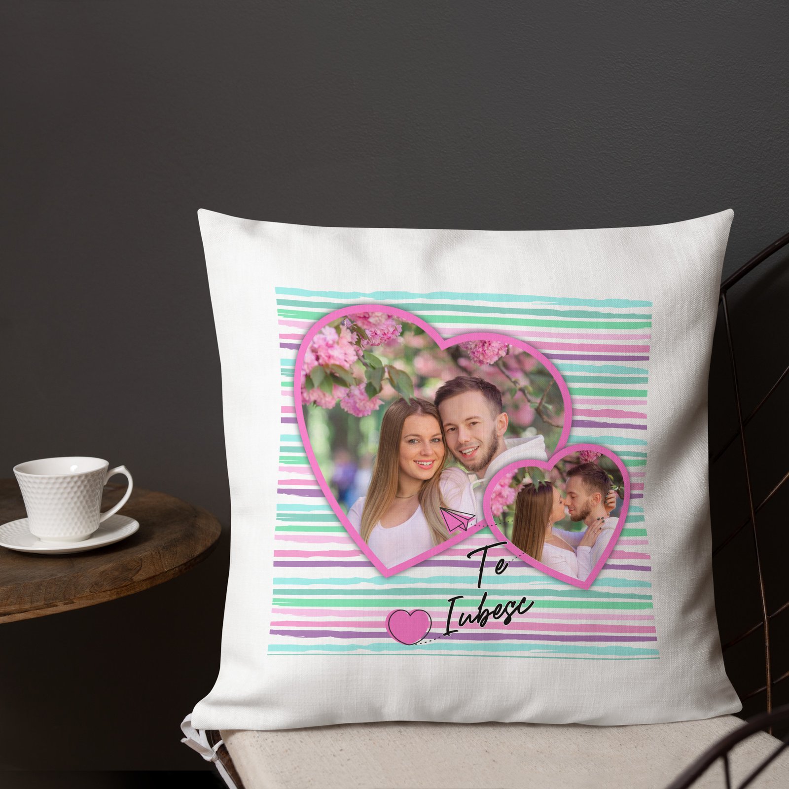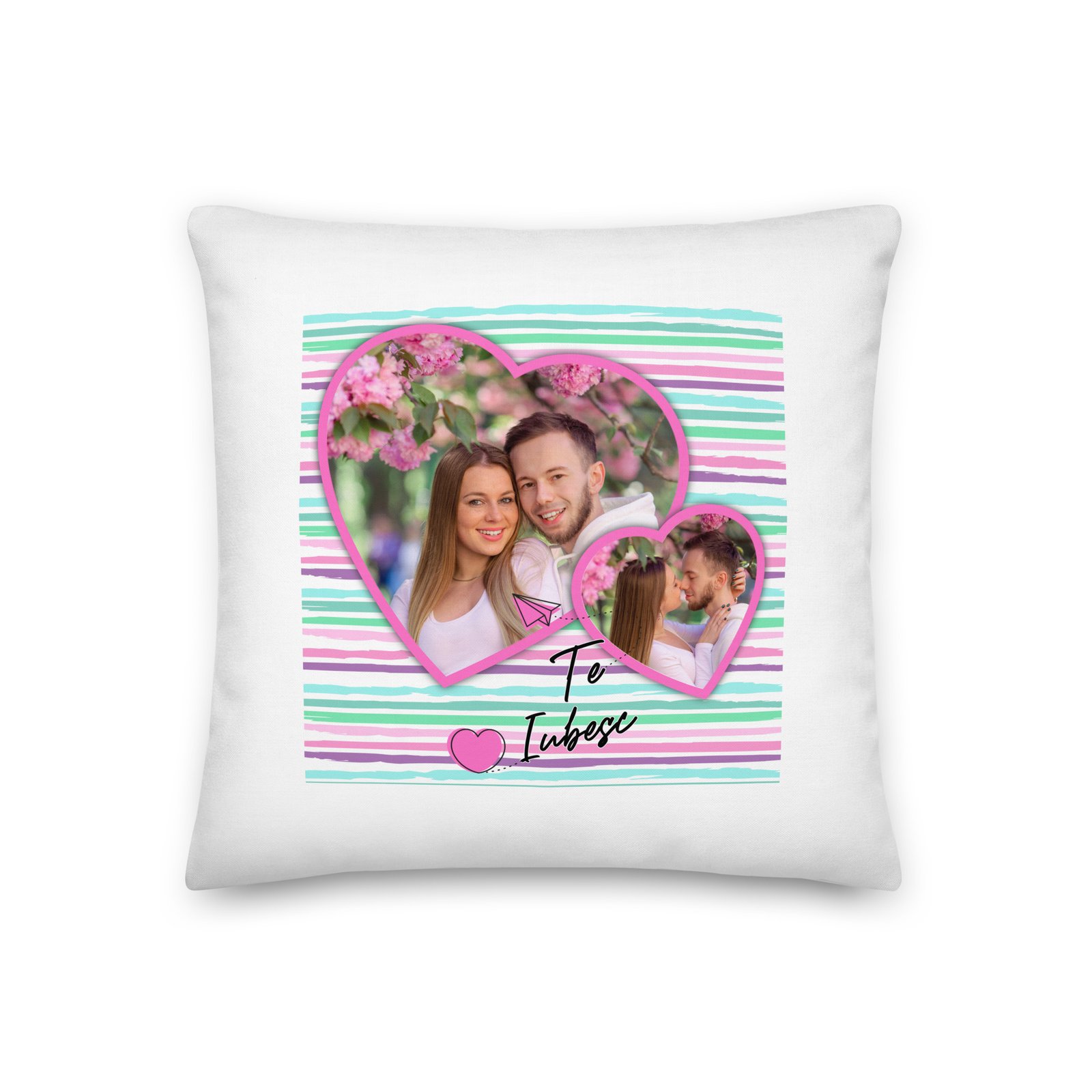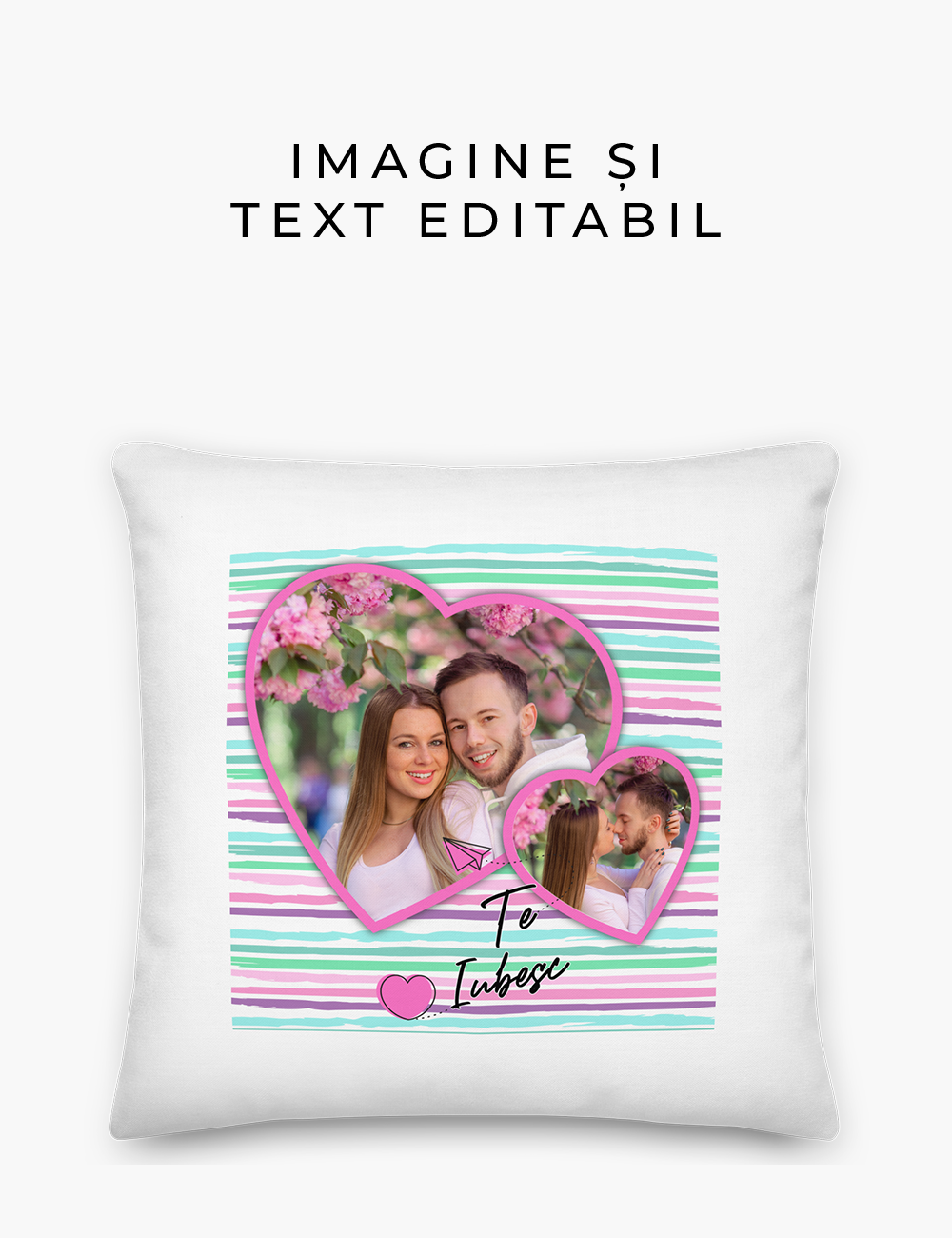 Pernă Personalizată cu Poză și Text - Te iubesc